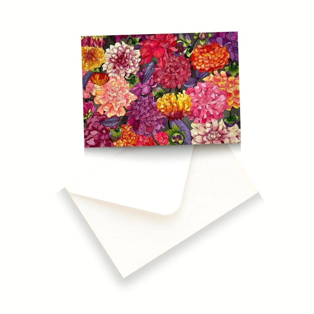 Store › Dahlia Delight Watercolor Greeting Card Blank Image 1 of 3 Image 2 of 3 Image 3 of 3 Dahlia Delight Watercolor Greeting Card Blank $7.00 A blank greeting card for any and all occasions. Purchase Added! A blank greeting card for any and all occasions.