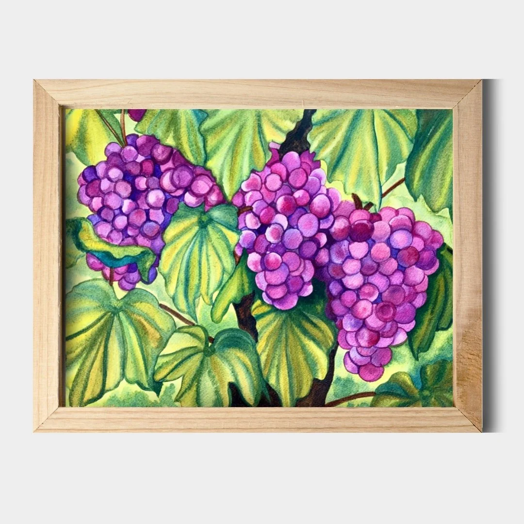 Store › I Heard It On The Grapevine Watercolor Fine Art Giclee Print Image 1 of 4 Image 2 of 4 Image 3 of 4 Image 4 of 4 I Heard It On The Grapevine Watercolor Fine Art Giclee Print from $35.00 Fine Art Glicee Prints with archival grade inks. Frames not included. Dimensions: Select Dimensions 8"x10" inches 11"x14" inches 16"x20" inches Purchase Added! Fine Art Glicee Prints with archival grade inks. Frames not included.